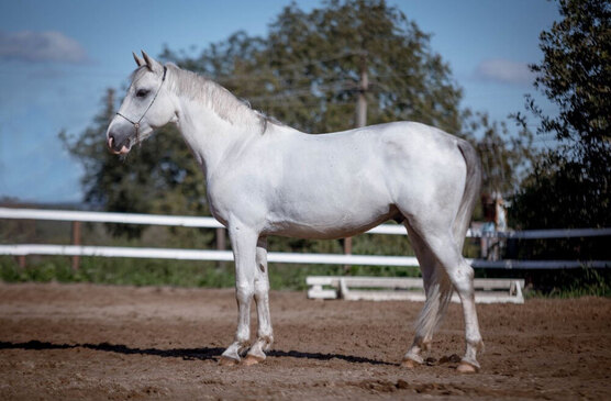 Перспективный спортивный партнер, имеет стартовый опыт по детским ездам, в том числе под ребёнком. Отличный вариант ребёнку или некрупному всаднику. На соревнованиях ведёт себя отлично, не боится ни бортиков, ни судейских кабинок, ни музыки. Честный, в меру активный, не смотрящий. Спокойно работает с другими лошадьми. Все бытовые манипуляции без проблем: грузится, расчищается, заплетается, бреется. Проблем по здоровью и денниковых пороков не имеет, ветчека нет.