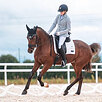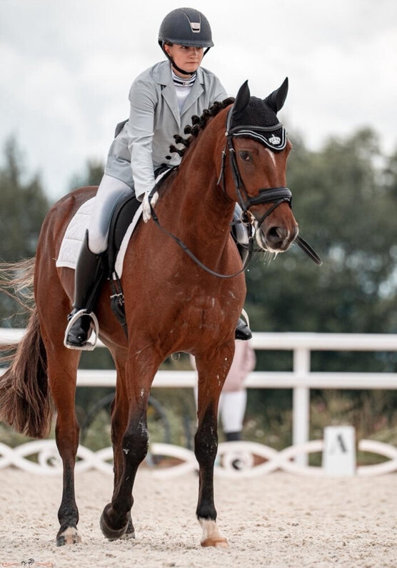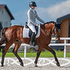 Работается в выездковом направлении, не форсируется. Выступает на соревнованиях по выездке в ездах для 4-х летних лошадей, занимает призовые места, все оценки от 7 баллов. Знает менку. На свободе напрыган до 130 см, выше не ставили, имеет хорошую технику прыжка. Подойдет любому всаднику. Очень адекватный, имеет хорошую устойчивую психику. Спокойный, доброжелательный и общительный. Отлично ведет себя на соревнованиях.