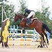 Проходит тренинг молодой лошади, не форсируется, стартовый опыт в маршрутах до 90 см, дома прыгает до метра.