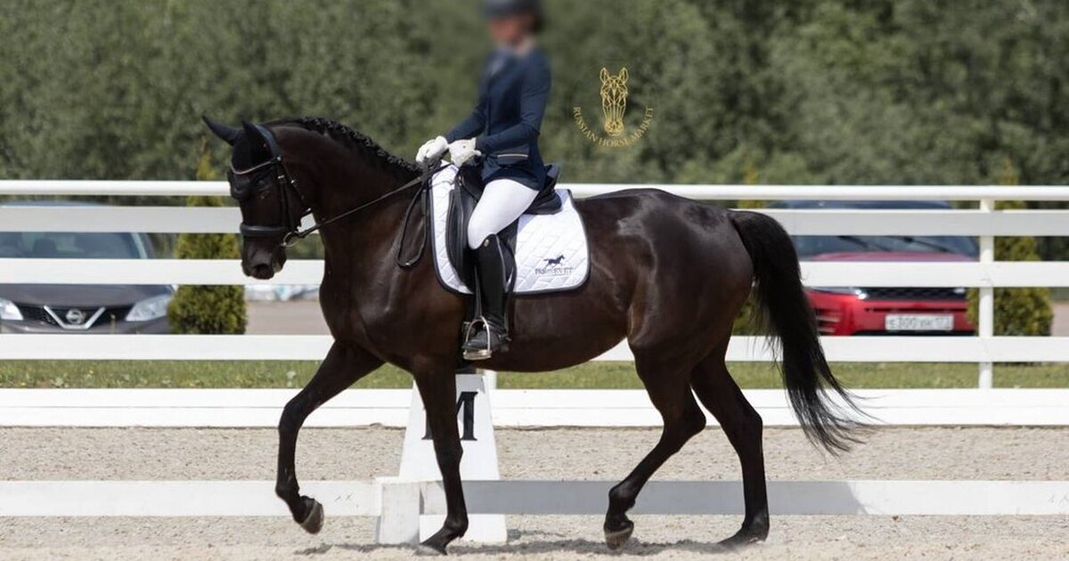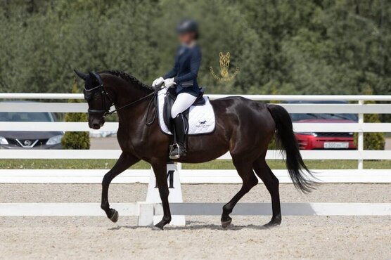 Очень элегантная лошадь с красивой головой, на правильных движениях.
