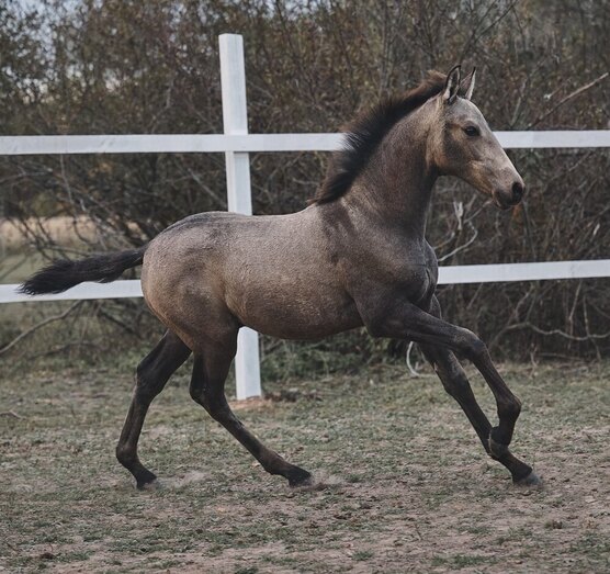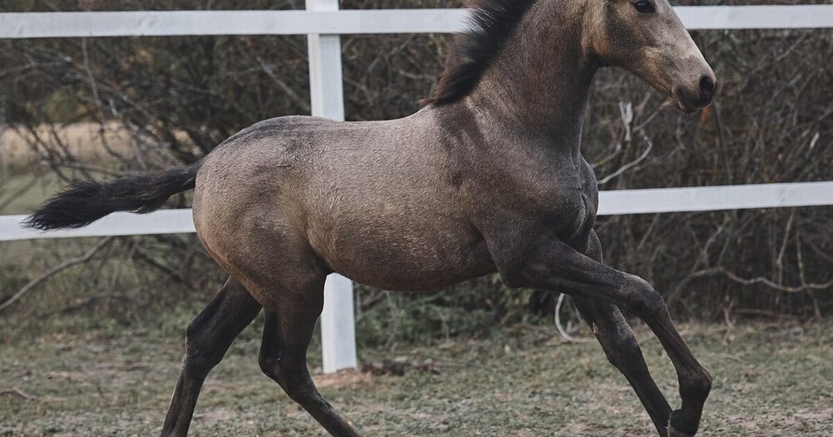 Испанский (андалузский) Pura Raza Espanola темно-буланый (с зональным потемнением, редкой масти) жеребчик Хеннесси, от пары с топовой родословной