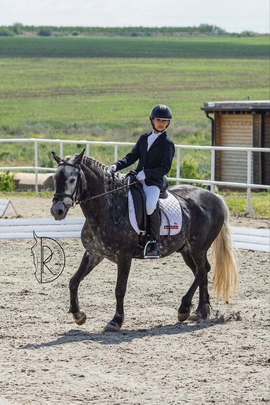 -Отлично выезжен. Работает под проф берейтором по выездке.