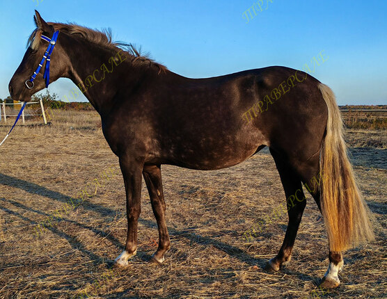 СЕРЕБРИСТО-ВОРОНОЙ МАСТИ кобыла, помесь пород, 2022 год рождения, рост 148-150 см. Из документов имеет: Договор купли-продажи, ветеринарное свидетельство.