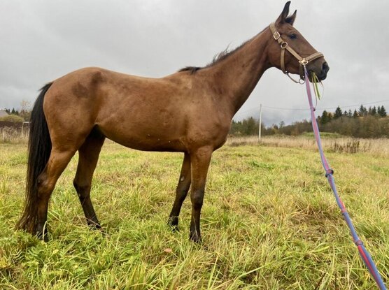 Хорошая детско-любительская лошадь не смотря на молодой возраст. Отлично ведет себя в полях, лесах. Может работать под детьми. Под седлом связки до 100см. Маршруты на стартах до 70см.