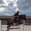 Старты - маршруты до 100 см. Дома - маршруты до 115 см, связки до 125 см. Знает троеборные барьеры. На прыжках выручает. Любит ходить в поля, купаться. Ласковый, любит внимание.