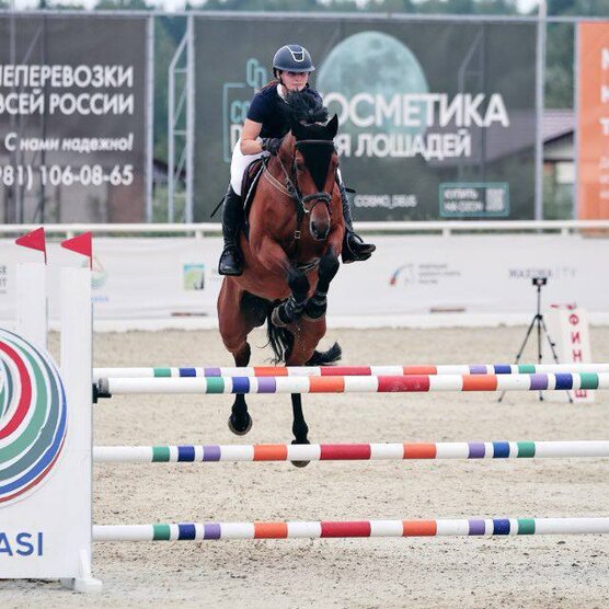Стартовый опыт в конкуре с высотой препятствий до 130 см. Подходит под всадника любого уровня подготовки.