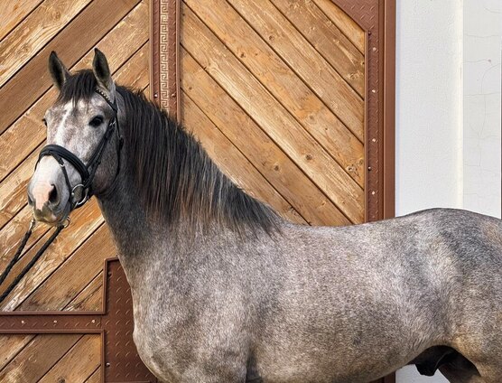 Приятные движения, хороший прыжок. Заезжен под верх, а также обозначена заездка в упряжь.