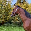 Экстерьерно правильно сложенный, с хорошими, пружинистыми движениями. Аллюры у коня бомбические -заступ на шагу 4 копыта.