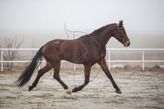 - Немецкой спортивной породы, (Да Винчи - Солана), линия Сандрохит. Сейчас работает по маршрутам 125 см, перспектива выше. Находится в грамотном тренинге, хорошая базовая выездковая подготовка.