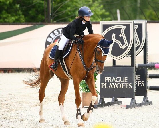 Стартовый опыт в конкуре с высотой препятствий до 100 см., перспективен на более высокие маршруты. Очень спокойный и ровный.