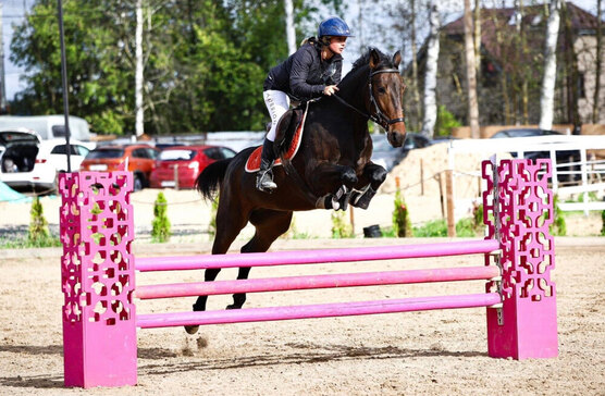 Идеальная лошадка, добрая и отзывчивая, нежная, максимально адекватна по голове, с отличной техникой прыжка и на летящих движениях.