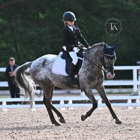 От Prince II. Максимально спокойный как верхом, так и в руках, можно полностью доверить ребенку. Бегает все детские езды. За год привез 1 юношеский разряд и 2 взрослый разряд. Имеется полный вет.чек.