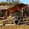 Отец - Карнавал, Мать - Гвейна. Очень спокойный и флегматичный. Заезжен. Перспективен в конкур и троеборье. Имеются рентгены всех ног.