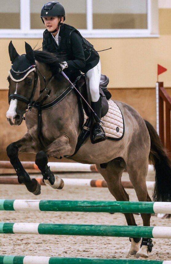 Старты - маршруты до 60 см, ППД А. Дома - одиночные до 80 см. Комфортный в быту. Ездит ребенок в паре с берейтором.