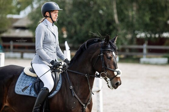 Прощает ошибки, прыгает из любой дистанции, не смотрит на барьеры. Знает уступки, плечо внутрь, повороты на заду. Меняет ноги.