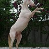 Не разносит, не психует, абсолютно спокойно работает с любыми лошадьми и пони на одном манеже/плацу. Техничный сильный прыжок. Напрыган под верхом до 130см.