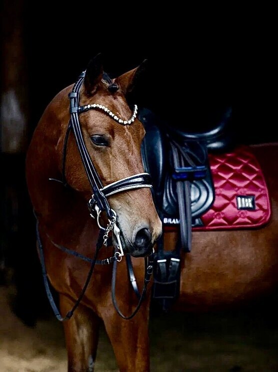 Работается под берейтором, прыгали до 80 см. Достаточно активная, мягкая на рот и шенкель.