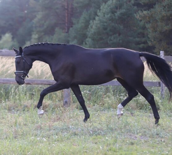 Базово заезжена - шаг и рысь под всадником. Обладает амплитудными аллюрами, сильным толчковым задом. Очень эффектная и харизматичная лошадь. Широкая, костистая. С удовольствием учится новому, сотрудничает с человеком, отдатлива в работе. Спокойная, добрая.