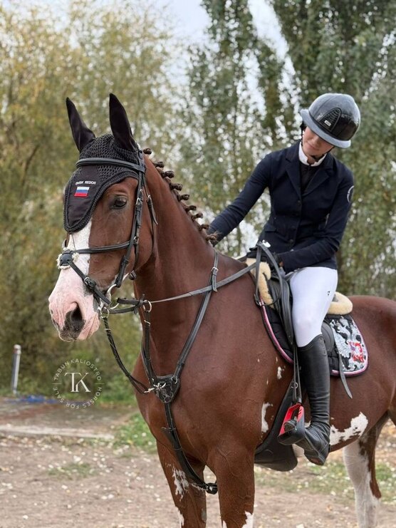 Имеет боевой характер. Стартовый опыт до 100 см, под опытным всадником прыгает до 110 см, в шпринте до 140 см. Имеется вет.чек.