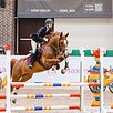 Стартовый опыт в конкуре с высотой препятствий до 100 см. и в Детских ездах. Дома прыгает связки до 120 см. Готов к Юношеским ездам.