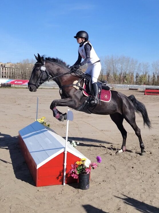 Конкур - до 90см под ребёнком, до 100см под берейтором (КМС). Дерби - до 70см под ребёнком, до 90см под берейтором (КМС). Выездка - уступки, осаживания, траверс, плечо во внутрь, ранверс,
