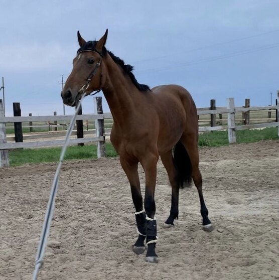 Заезжен в октябре 2025 г. Напрыган в шпринте до 80 см. Обладает хорошим и техничным прыжком, свободными движениями. Спокойный, ничего не боится. Контактный, добрый, никогда не укусит и не ударит.