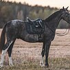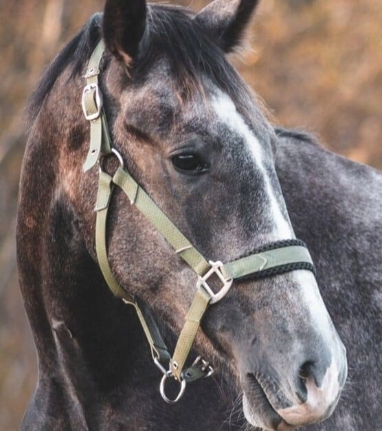 Оповожен, знает корду, работает на вожжах. Управляется голосом. Седлается, но верхом не садились. Ласковый, абсолютно безопасный. Весь световой день гуляет на пастбище.