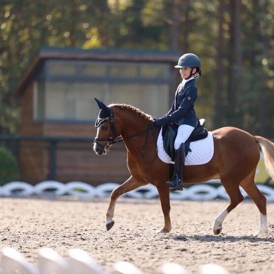 Все детские и пони-езды, активно стартует, член сборной по выездке.