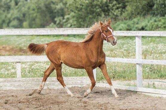 Оповожена, приучена ко всем манипуляциям. Растет в табуне с кобылами при левадном содержании.