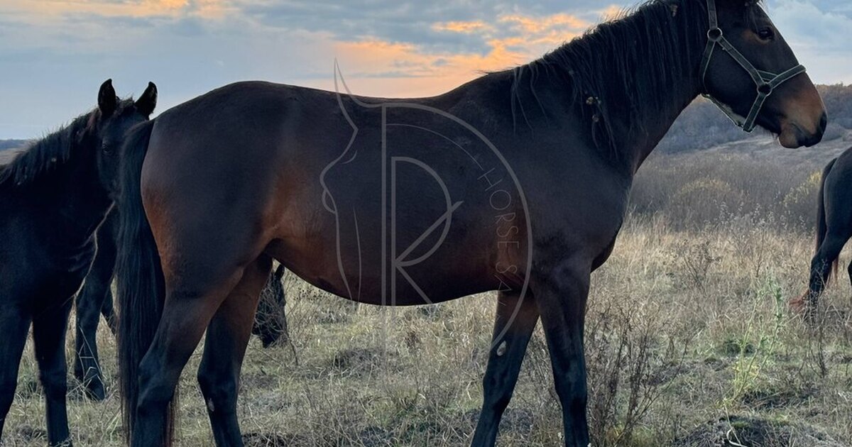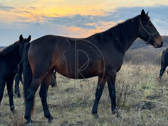 - На выпасе 24/7, спокойна в табуне и пасётся в пастухе. Сейчас жеребая (крыта вороным жеребцом, март–апрель), в стадии лёгкой заездки.