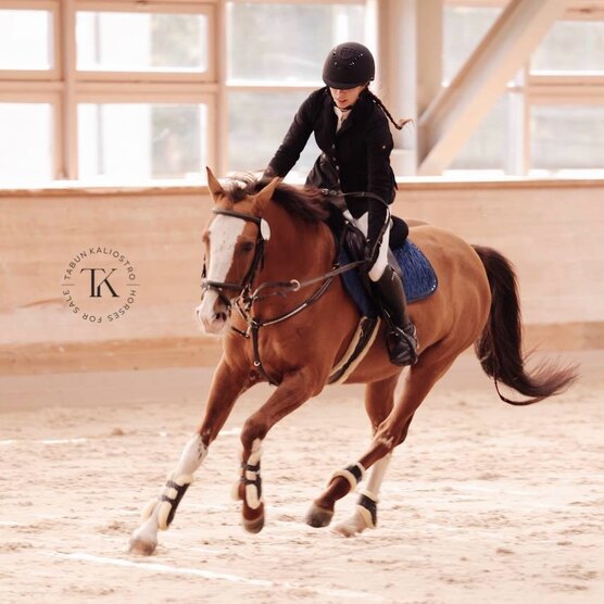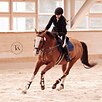 Стартовый опыт по конкуру, маршруты до 100 см, с перспективой выше. Препятствий не боится, аккуратный, смелый, прыгает любые барьеры. Простой в управлении, рулится на обычной восьмерке. Езды по 5-летним лошадям на 66,800%. Не реагирует на лошадей, гуляет с кобылами и пони. Бронебойная психика и спокойствие. Подойдет практически под любого всадника. Лошадь не форсируется, тренируется аккуратно в силу возраста.