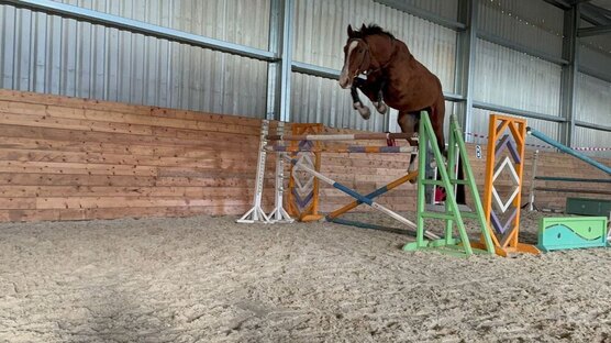 Лошадь выращивалась для себя. Не форсирован. Связки 110 - 115 см., участвовал в открытых тренировках. В шпринте напрыган до 145 см. Подходит под всадника любого уровня подготовки, включая любителя и ребёнка.
