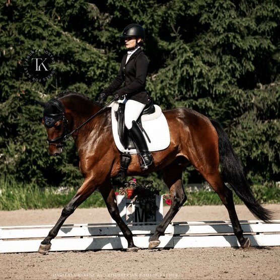 Отец - Май Рой. Очень человекоориентированный, имеет отличную психику, быстро идет на контакт и учится новому. Работается в выездку, имеет хорошие движения. Имеет стартовый опыт по ездам для лошадей 4х лет. Имеется вет.чек.