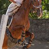 Все бытовые манипуляции на 5+ (пшикалки, уколы, расчистки, ковки, погрузка в коневоз, купается в море) - лошадь на все случаи жизни, полностью безопасен. Хоть детей в поводу катать, хоть спортсмену прыгать. Очень хорошо знает свою работу - с новичками аккуратен, ни разу никого не ронял, на спортивных тренировках активен и сосредоточен.
