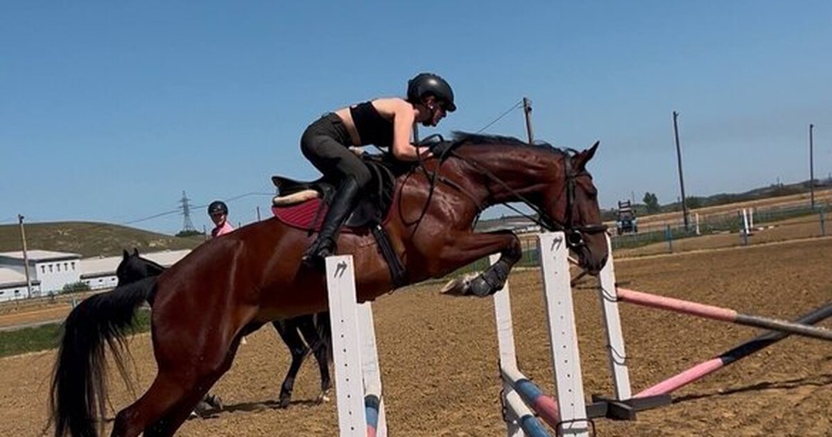 Гуляет с другими лошадьми , заходит в речку, отлично ведет себя в полях .