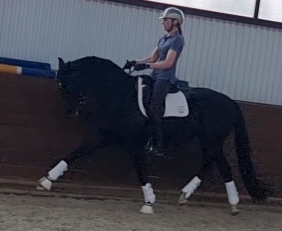 Делает все боковые, одиночные менки, пируэты на галопе, пассаж, пиаффе.