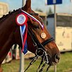 В выездке — результат 72% в езде для пятилеток, готов к Юношеским ездам: делает все боковые элементы и менки, а также ехал Малый и Средний приз.