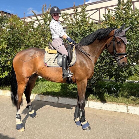 Holsted X Lekont. Безопасная. Уровень подготовки: езды по 5-летним и 6-летним лошадям, готовится к ездам по 7-летним, процент всегда выше 75%. Последнее оценки за аллюры: шаг - 8.3, рысь - 7.9, галоп - 8. Чисто делает менки, пируэты на шагу, принимания, уступки, плечи, готовится к выполнению серийных менок, пассажа и пиаффе. Подойдет под любого всадника. Жеребилась. Отлично переносит любые манипуляции.