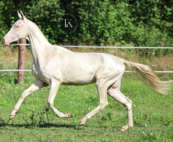 Жеребец. Ахалтекинской породы. Изабелловой масти. 158 см в холке. 2023 года рождения.