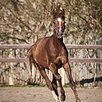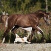Серой масти. Очень интересный конь, на качественных, сбалансированных и производительных аллюрах.