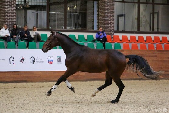 Проходит тренинг молодой лошади, не форсируется. Напрыган в шпринте до 140, верхом до 70 см. Отлично подойдет как для конкура, так и для выездки, на прекрасных движениях.