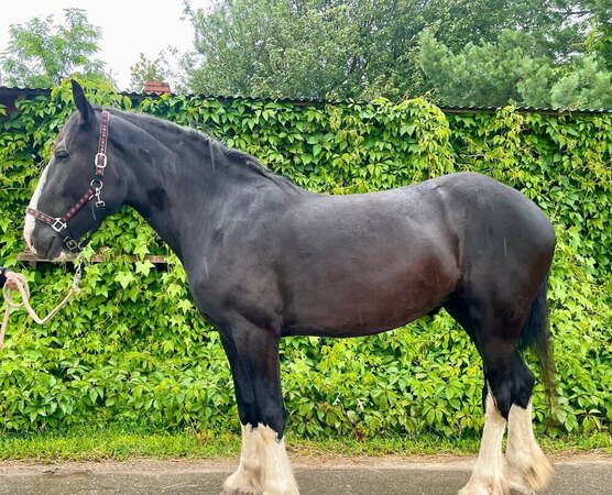Обладает правильным породным экстерьером. Пышные щетки, горбоносость. Когда полностью вырастет и сформируется — будет невероятная по красоте кобыла.