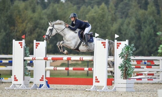 Старты - маршруты 130 см, сейчас стартует маршруты 110 см. Абсолютно адекватный под седлом и в быту, спокойный, на стартах ведет себя отлично, ничего не боится. Сейчас ездит начинающая 13-летняя девочка.
