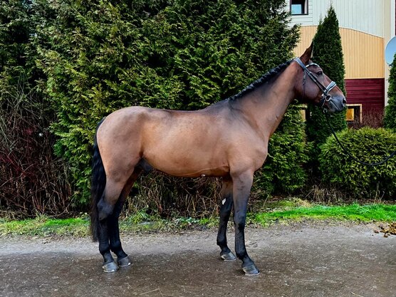 Хорошо и грамотно выезжен. Работает в выездковом направлении: