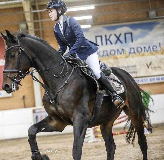 Имеет стартовый опыт по маршрутам до 120 см. Знает боковые, менки. На данный момент в легком верховом тренинге по не связанным с конем причинам. Активный. Спокойно ходит в поля. Очень воспитанный, тактичный.