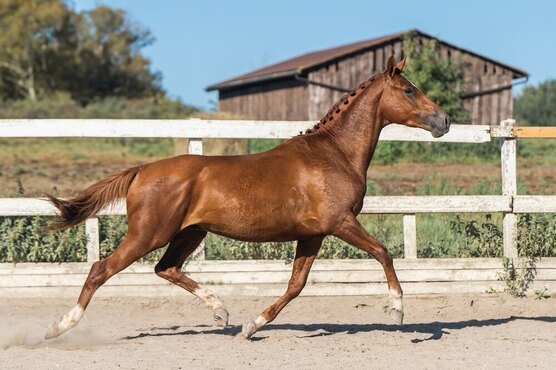 Заезжен весной 2025 г. Проходит базовую подготовку под седлом. В шпрингартене напрыган до 140 см. Работается согласно возрасту, не форсируется.