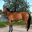 От тракененского жеребца и ахалтекино-ганноверской кобылы.