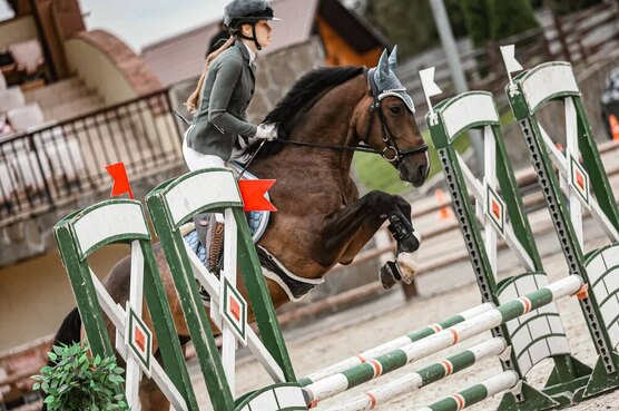 Старты - маршруты до 80 см, ППД А (67%). Дома - маршруты до 90 см, одиночные до 100 см, шпринт до 110 см (выше не ставили). Уверенно идет на барьер. Ходит в леса / поля. Удобный под седлом, держит стабильный контакт. Ласковый, нежный и общительный.