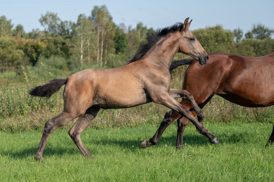 Восхитительная красно-серая испанская кобылка, Ньета (Nieta GEF), родилась 17.05.25 от Nanna Onix и Suerte GEF. Высокая, мощная, с красивой линией верха и высоким выходом шеи и на очень просторных движениях. Великолепный представитель породы. Возможна рассрочка, доращивание и доставка.