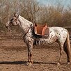 Проходила тренинг по рабочей выездке. Три уверенных аллюра под седлом, уступки, плечо внутрь, пируэт на шагу, сайд-пасс. Работается и в трюки - знает свечку, трапецию, поклон, тумбу, в процессе балансе на заду.